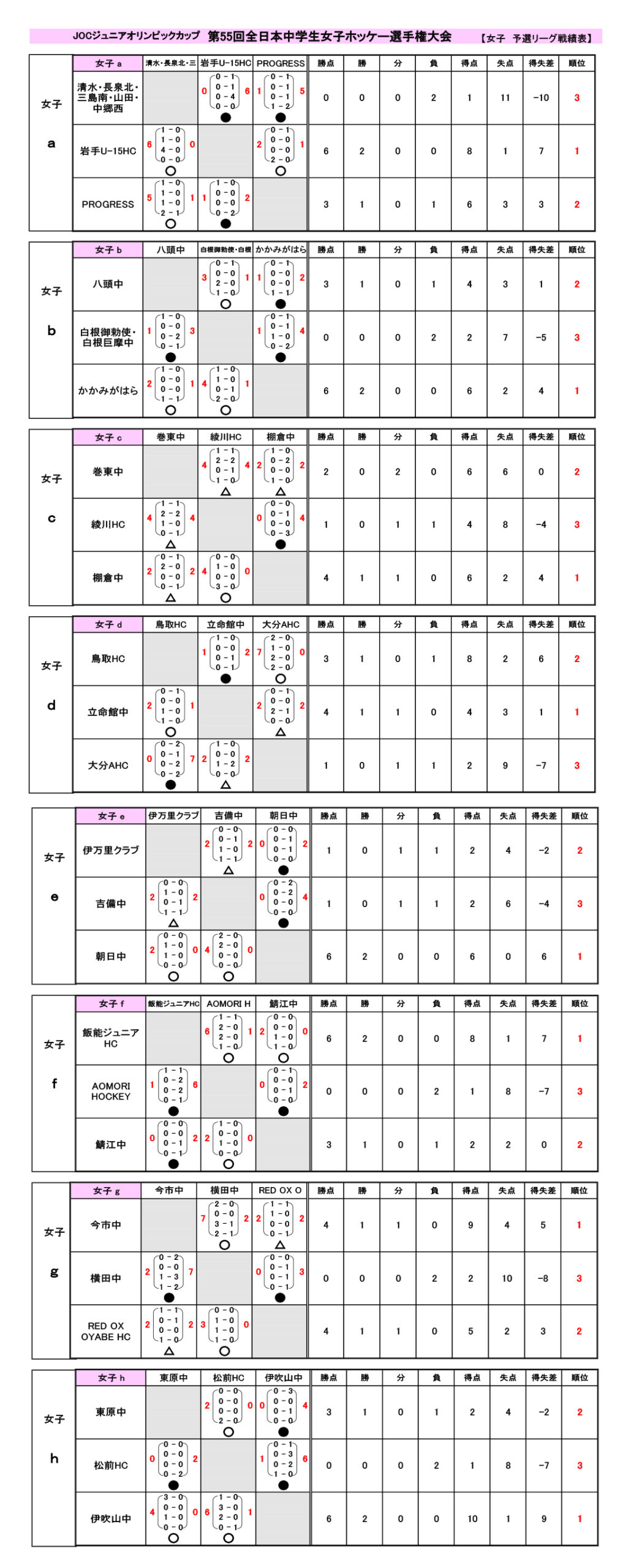 女子予選リーグ ー 公式試合記録
