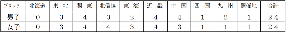 ※優勝枠:昨年度男子優勝の中国ブロック、女子優勝の東海ブロックにそれぞれ1枠を増やしている。